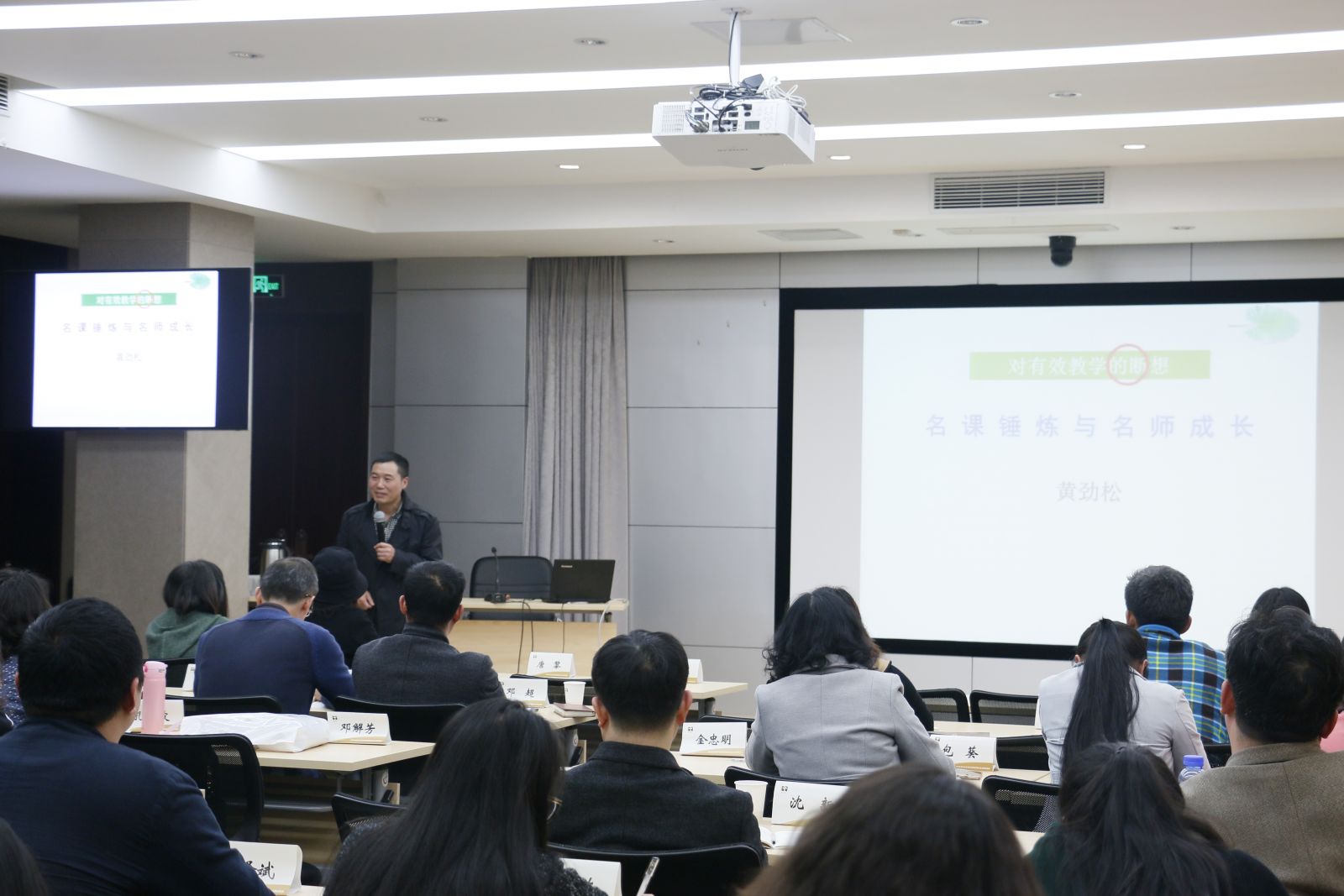 下午,上海市特级教师黄劲松则为校(园)长们带来了一场聚焦名师成长与名课锤炼的专题讲座。黄老师幽默风趣、深入浅出的讲课方式,对真实教学案例的适时引入和生动分析,让校(园)长们更好地理解了名师的泉源在课堂,是自我塑造的结果,而名课是盛满了知识盛满了美的真谛所在。