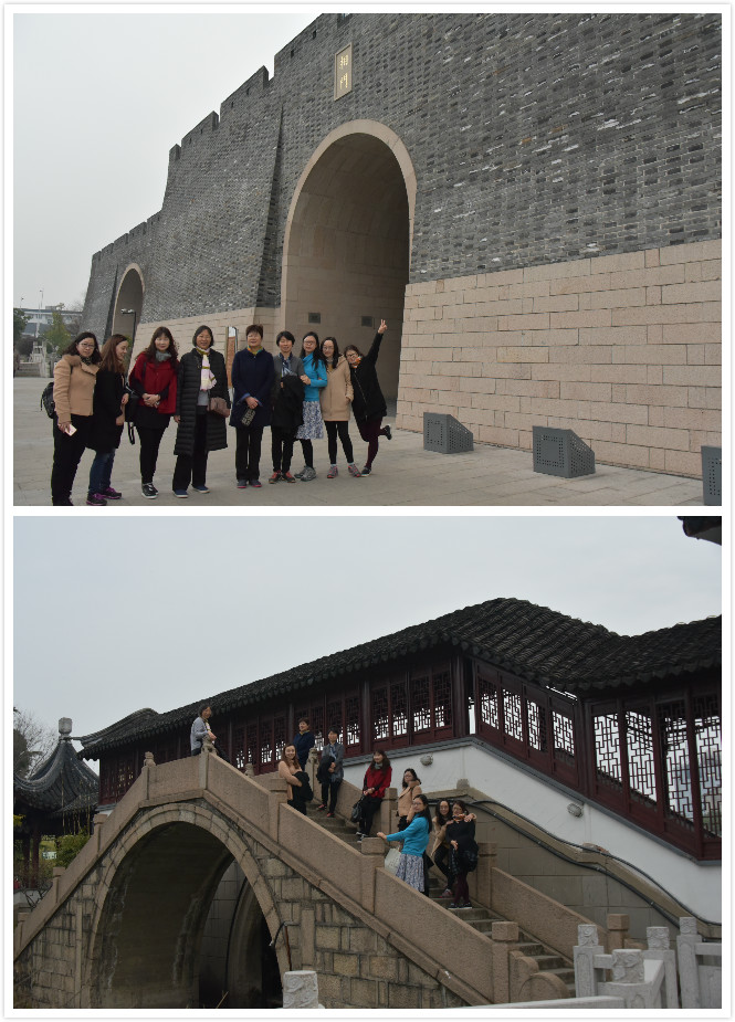 虽然天气有些阴沉,但丝毫没有影响到大家的游览兴致。也许工作的繁忙,让大家很少有心境细细品读这具有2500多年历史文化的苏州,更难以好好地瞻望这古城墙的雄伟壮观。有人提议大家是否可以在这古城墙边上合个影,大家都欣然同意,金鸡独立状、小鸟依人状、大义凛然状……各种拍照姿态顿时让画面充满了喜感,这样的心境正是大家此时此景下的真实流露。