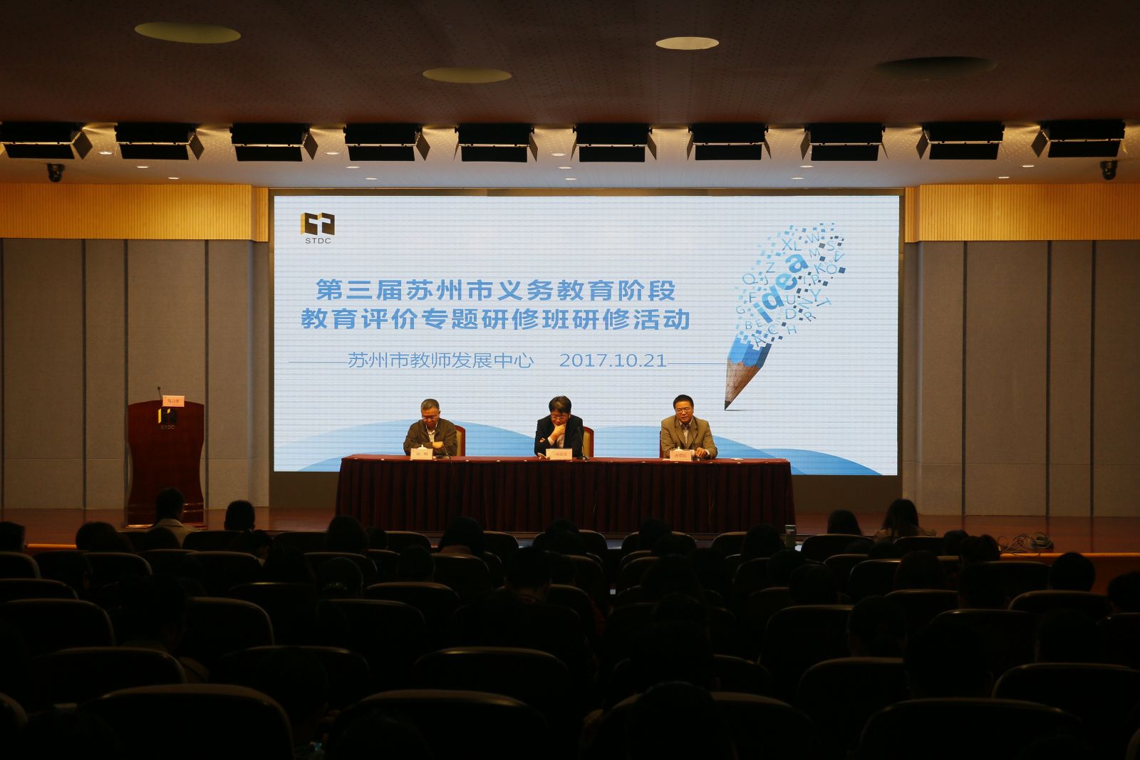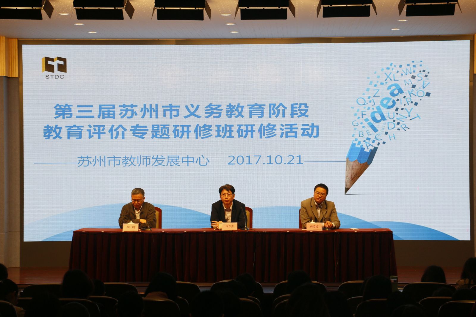 10月21日,第三届苏州市义务教育阶段教育评价专题研修班在苏州市教师发展中心正式开班。苏州市教育局副局长项春雷、苏州市教师发展中心主任唐爱民、苏州市教师发展中心顾问胡明以及212名2016年苏州市教育考试院组织的命题比赛的获奖者出席了开班仪式。
