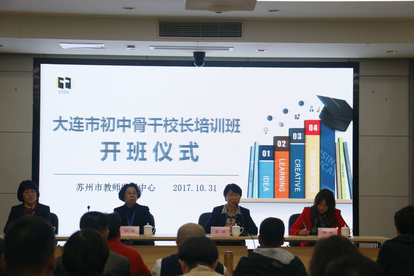 菊黄蟹肥秋正浓。10月31日,大连市初中骨干校长培训班在苏开班,苏州市教师发展中心副书记郑谧、苏州市教师发展中心培训处主任魏群、大连市教育学院中小学校长培训中心主任屠广越、大连市教育学院中小学校长培训中心吕丽筠老师以及42位大连市初中骨干校长出席了仪式。